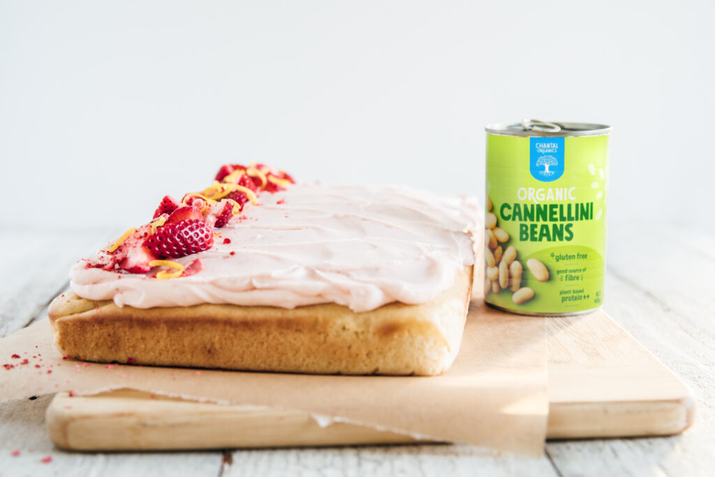 This Luscious Lemon Cake uses a can of cannellini beans instead of butter. And you would never know it! Top it with the strawberry cream cheese frosting for a birthday party or skip the frosting and drizzle with lemon syrup for lunchboxes.