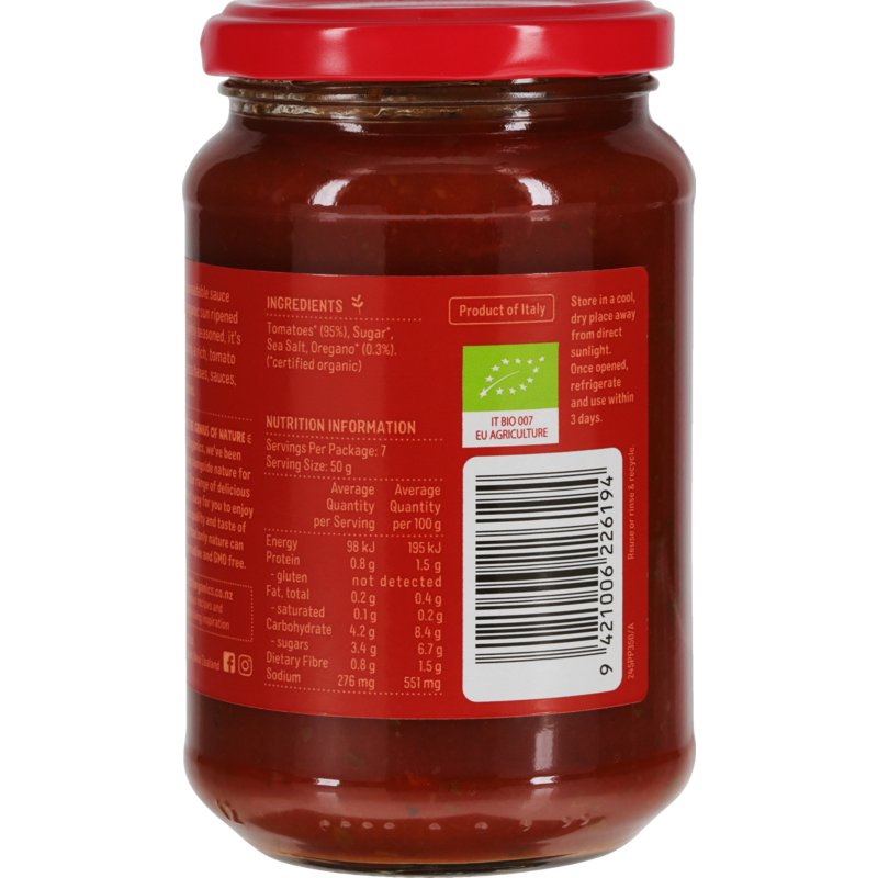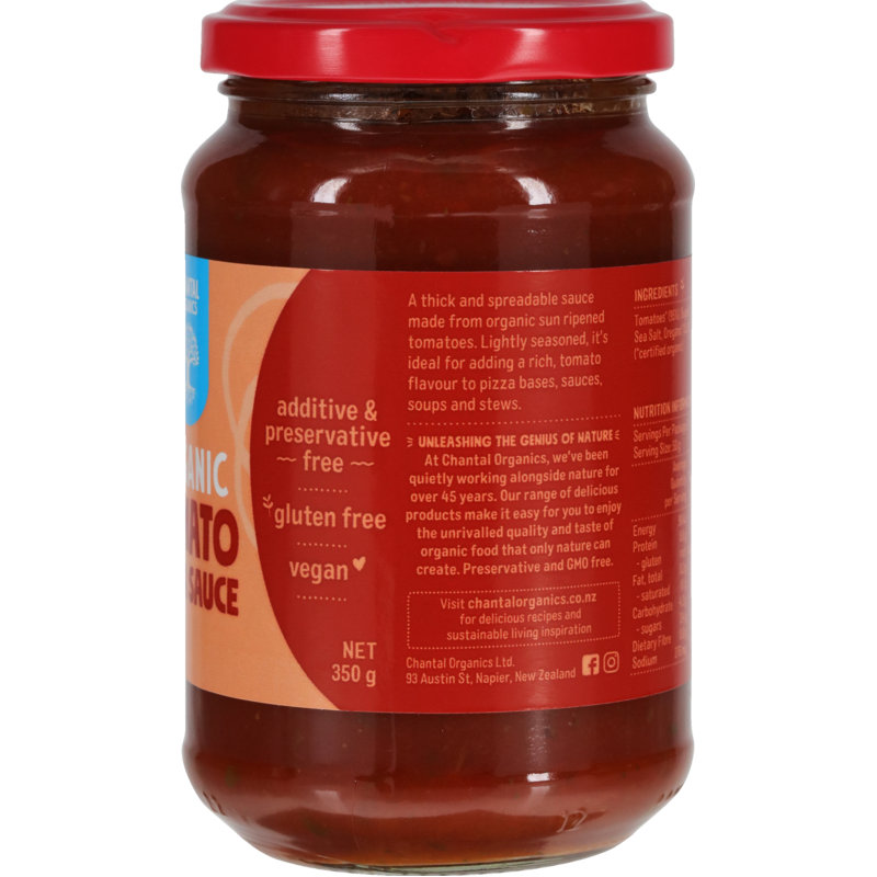 A thick and spreadable sauce made from organic sun ripened tomatoes. Carefully seasoned, it’s ideal for adding a rich, tomato flavour to pizza bases, sauces, soups and stews.
