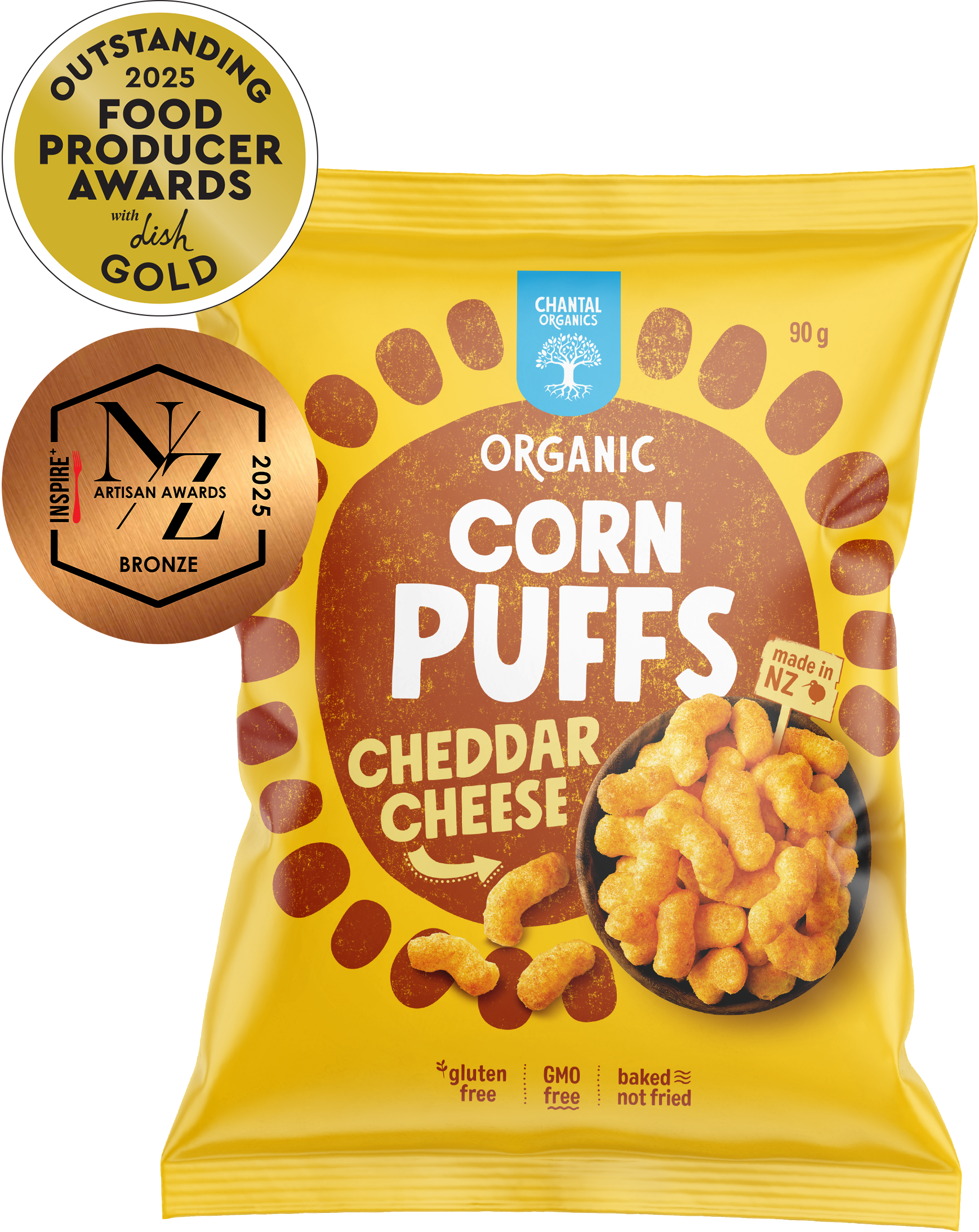 Chantal Organics Corn Puffs are made from certified organic corn that is baked into a light and crunchy puff and covered with a unique blend of seasonings and spices. These irresistible puffs are perfect for any snacking occasion. Elevate your movie nights and get-togethers or enjoy them on-the-go and in the office. So amazingly scrumptious that one puff is never enough!